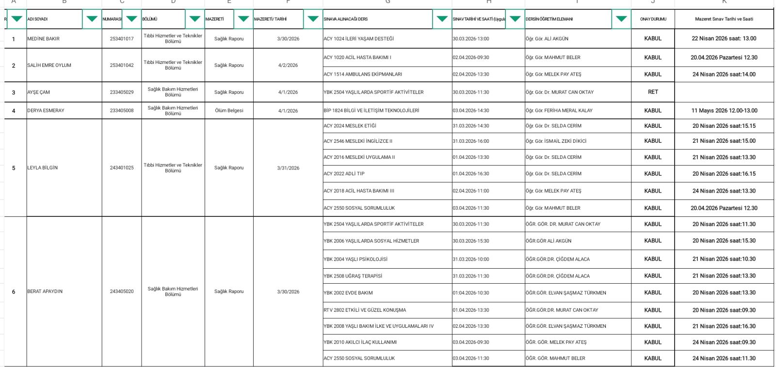 2025-2026 BAHAR YARIYILI ARA SINAV MAZERET SINAV TAKVİMİ Son Güncelleme : 16.04.2026 13:34 Okunma Sayısı : 152