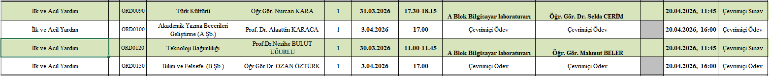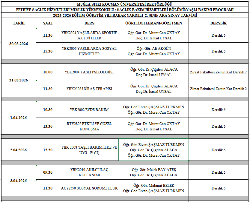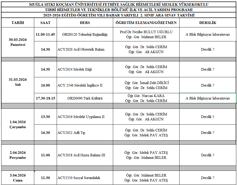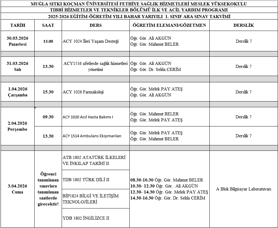 2025-2026 EĞİTİM ÖĞRETİM YILI BAHAR YARIYILI ARA SINAV TAKVİMİ Son Güncelleme : 24.03.2026 09:01 Okunma Sayısı : 341