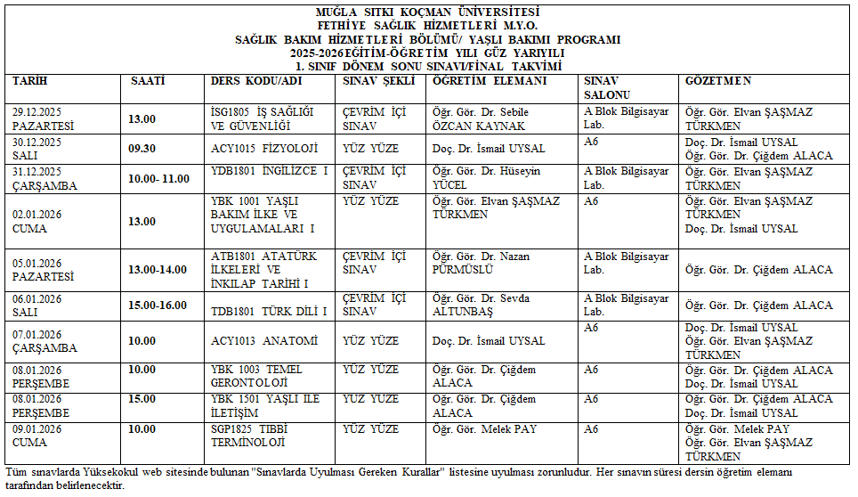 2025-2026 EĞİTİM ÖĞRETİM YILI GÜZ YARIYILI FİNAL VE BÜTÜNLEME SINAV TAKVİMİ Son Güncelleme : 29.12.2025 08:53 Okunma Sayısı : 466